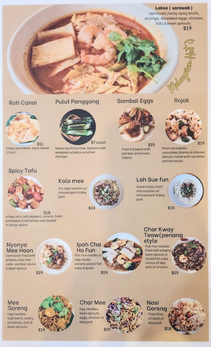 As a reviewer wrapping up the menu experience at Malaysian Hut in Surrey, the menu reads like a lovingly curated tour of Malaysian favourites that balances hearty mains with enticing small plates and comforting classics. Standout mains include Lo Mee and Fish Ball Soup, alongside bold noodle dishes such as Sarawak Curry Laksa and Penang Char Kway Teow, each showcasing rich flavours and satisfying portions. Among the small plates, favourites like Roti Canai, Pulut Panggang, and Sambal Eggs set the tone for authentic snacks, while shareable bites like Satay and Gado Gado offer smoky and fresh contrasts. The menu also nods to other beloved Malaysian staples-Curry Mee, Char Kway Teow, Ipoh Char Ho Fun, and Char Mee-ensuring that there’s something for every palate, and refreshingly simple drink options such as Coke round out the offerings. Whether you’re drawn to slurpable soups, wok‑fried noodles, or spicy sides, the menu delivers a cohesive and flavour‑rich snapshot of Malaysian cuisine that keeps diners coming back for more.